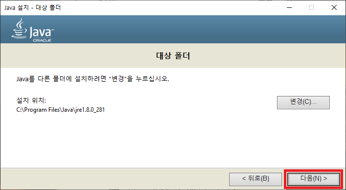 5. 본인이 JDK1.8을 다른 경로에 설치하고 싶다면 Change버튼을 눌러서 경로를 변경할 수 있다.