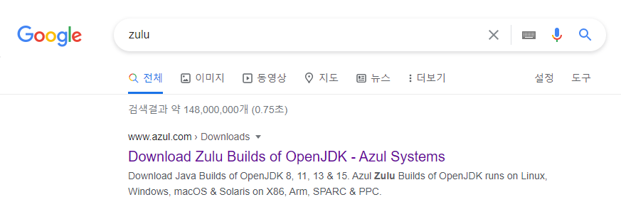 1. 구글에 zulu를 검색하고 제일 상단에 나와있는 Zulu사이트에 들어가도록 한다.