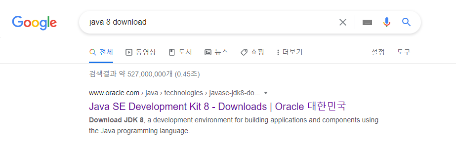 1. 구글에 java (원하는 버전) download를 검색하고 제일 상단에 나와있는 Oracle 사이트에 들어가도록 한다.