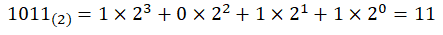2진수인 1011을 10진수로 변환할 때 1의자리 수 부터 각각 2의 0승, 2의 1승, 2의 2승 ... 2의 n승을 차례대로 곱해주면 된다.