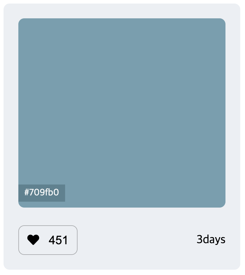 2. #709fb0 컬러값이 적힌 작은 박스는 span태그로 하되, 마우스가 색상박스에 올려졌을 때만 보여질 수 있도록 해주기 위해 hover 선택자와 opacity CSS 속성 이용하기