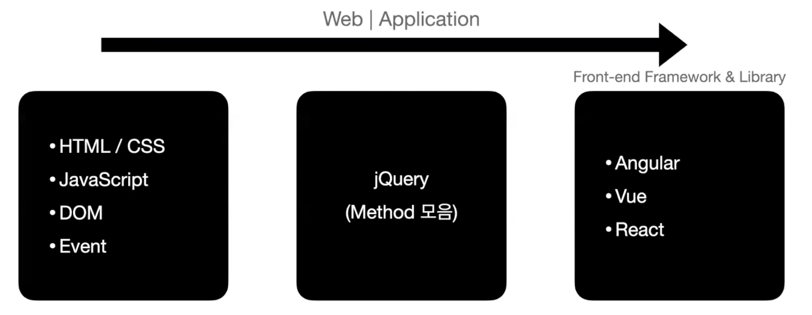 웹이 발전하여 DOM의 조작이 빈번하게 발생함에 따라 jQuery 기술이 등장하게 됐다. 결국 jQuery는 DOM을 조작한다는 행위에서 벗어나지 못해서 점점 복잡해지는 환경에서 한계에 도달하게 되었다.