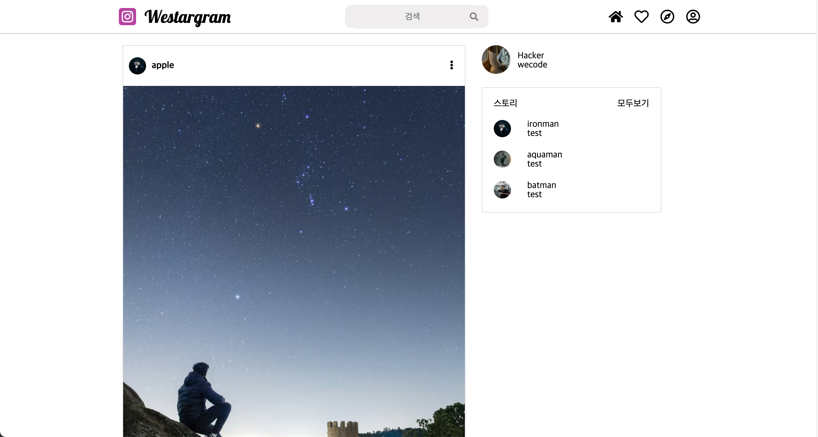 Foundation-2 기간 동안 useEffect, Mock data 등의 개념을 익혔고, 이를 토대로 본인의 westagram을 리팩토링 하는 시간을 가졌다. 백엔드와 연결하는 방법을 익히기 전에는 .js 파일에 직접 HTML 코드에 값을 입력하는 하드코딩 형태로 화면을 보이게 만들었었다. 지금은 백엔드 API가 완성되기 전이라고 가정하고 Mock data인 .json파일을 만들어서 백엔드에서 데이터가 들어오는 상황처럼 만들어서 UI가 잘 구성되는지 확인했다. 이어서 피드와 댓글 모두를 컴포넌트화 시키고 Mock data와 map함수를 활용해서 간결해 보이는 코드로 리팩토링 하는 시간을 가졌다. 아래에 mock data와 useEffect, fetch, map을 통해서 어떻게 피드를 반복했는지 내 코드 일부를 가져왔다.