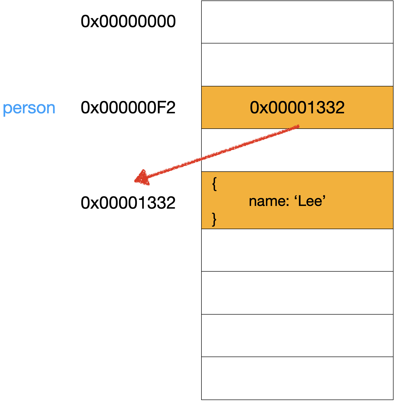 - 변수의 메모리 주소를 통해 메모리 공간에 접근하면 원시 값의 경우에는 원시 값 자체에 접근할 수 있는 반면에 객체의 경우는 참조 값에 접근할 수 있다.