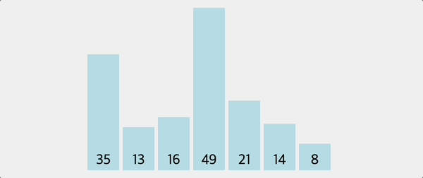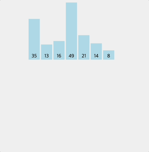 가장 작은 값을 탐색 후, 정렬되지 않은 가장 앞 인덱스에 위치한 값과 교체하는 알고리즘이다.